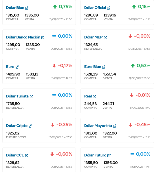 ASÍ COTIZA EL DÓLAR EN ESTE COMIENZO DE SEMANA DEL 11 DE AGOSTO