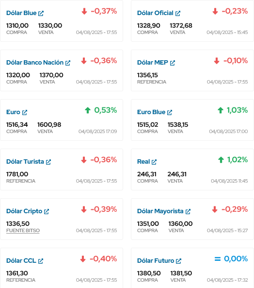 ASÍ COTIZA EL DÓLAR EN ESTE DIA 4 DE AGOSTO