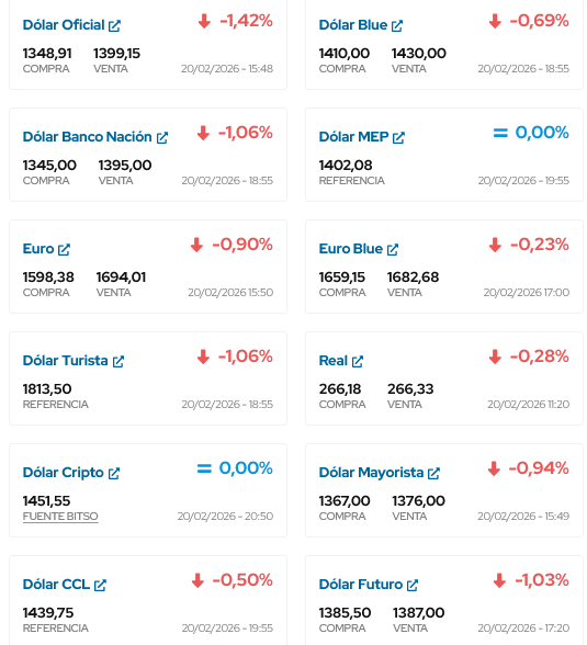 ASI TERMINA DE COTIZAR EL DOLAR EN ESTE DIA 20 DE FEBRERO