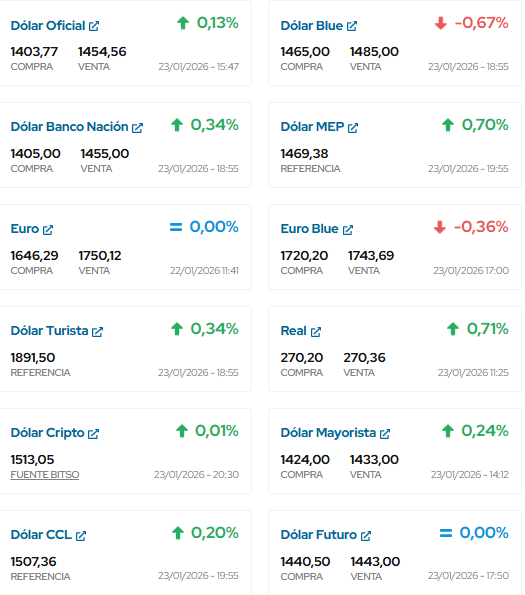ASI TERMINA DE COTIZAR EL DOLAR EN ESTE DIA 23 DE ENERO