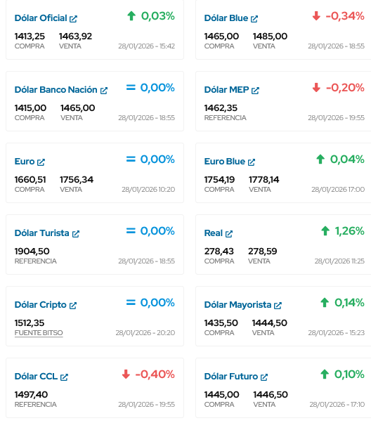 ASÍ TERMINA DE COTIZAR EL DÓLAR EN ESTE DIA 28 DE ENERO