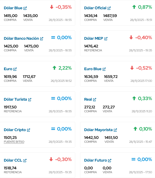 ASÍ TERMINA DE COTIZAR EL DÓLAR EN ESTE DIA 28 DE NOVIEMBRE