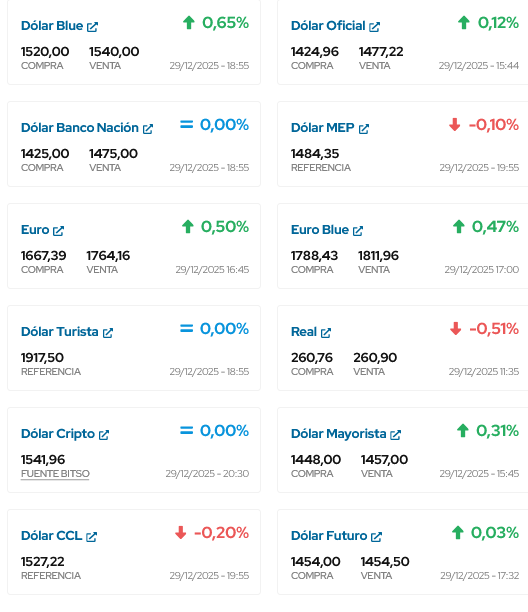 ASÍ TERMINA DE COTIZAR EL DÓLAR EN ESTE DIA 29 DE DICIEMBRE