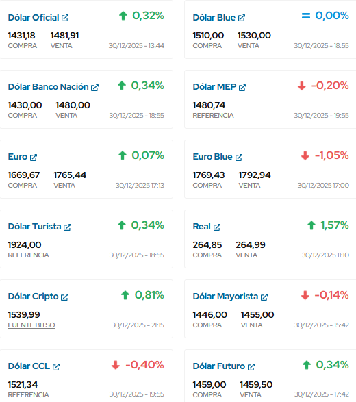 ASÍ TERMINA DE COTIZAR EL DÓLAR EN ESTE DIA 30 DE DICIEMBRE