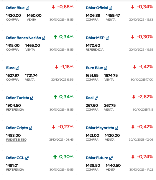 ASÍ TERMINA DE COTIZAR EL DÓLAR EN ESTE DÍA 31 DE OCTUBRE