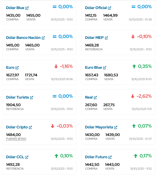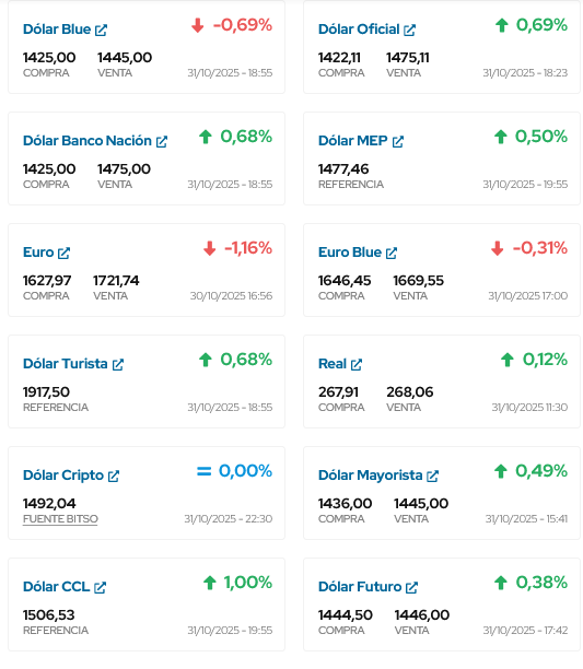 ASÍ TERMINA DE COTIZAR EL DÓLAR EN ESTE DÍA 31 DE OCTUBRE