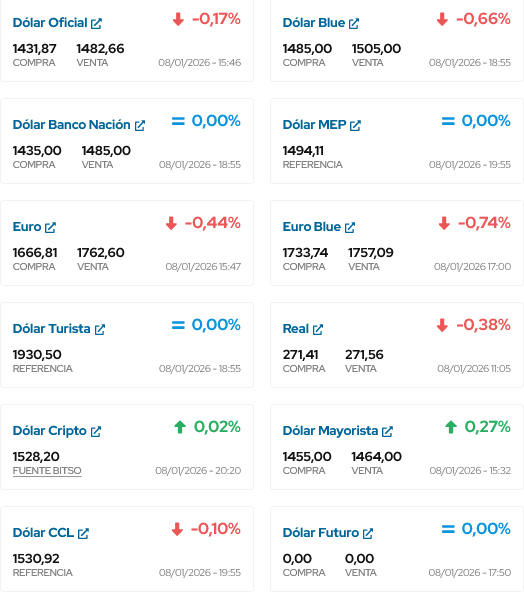 ASÍ TERMINA DE COTIZAR EL DÓLAR EN ESTE DIA 8 DE ENERO
