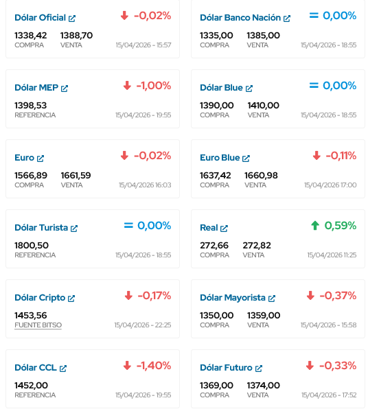 ASI TERMINO DE COTIZAR EL DOLAR EN ESTE DIA 15 DE ABRIL