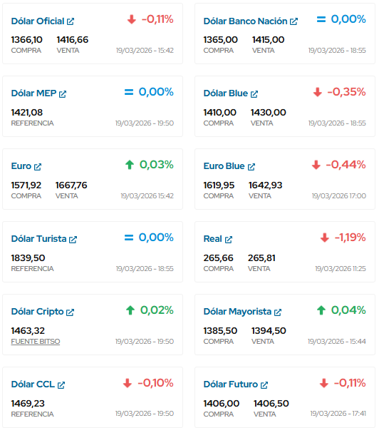 ASI TERMINO DE COTIZAR EL DOLAR EN ESTE DIA 19 DE MARZO