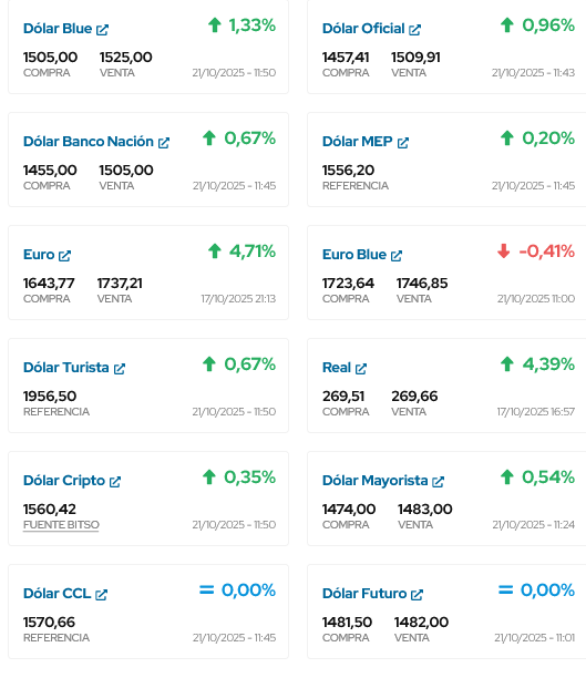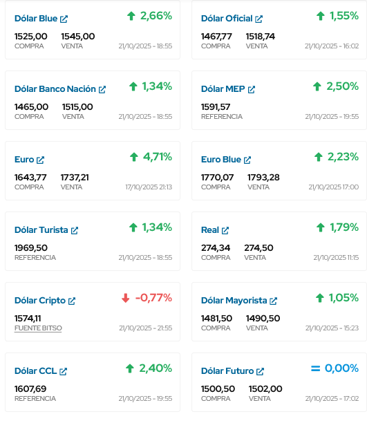 ASÍ TERMINO DE COTIZAR EL DÓLAR EN ESTE DÍA 21 DE OCTUBRE