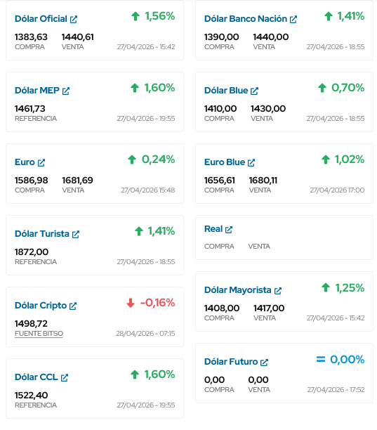 ASI TERMINO DE COTIZAR EL DOLAR EN ESTE DIA 27 DE ABRIL