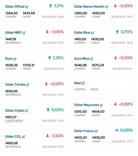 ASI TERMINO DE COTIZAR EL DOLAR EN ESTE DIA 28 DE ABRIL
