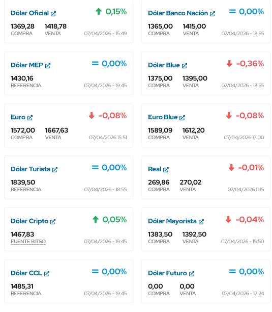 ASI TERMINO DE COTIZAR EL DOLAR EN ESTE DIA 7 DE ABRIL