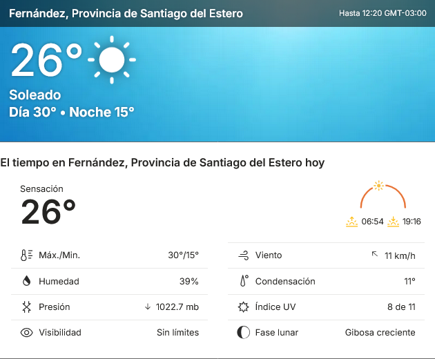 EL CLIMA EN LA CIUDAD DE FERNANDEZ EN ESTE DIA 21 DE ABRIL