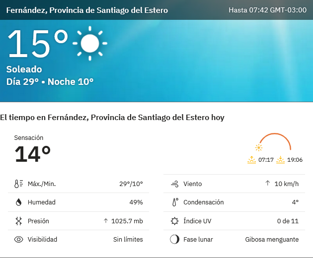 EL CLIMA EN LA CIUDAD DE FERNANDEZ EN ESTE DIA 11 DE SEPTIEMBRE