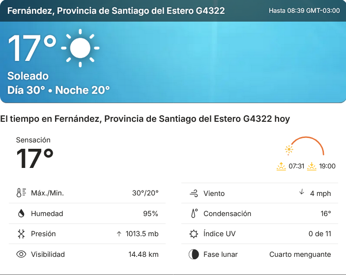 EL CLIMA EN LA CIUDAD DE FERNANDEZ EN ESTE DI 16 DE ABRIL