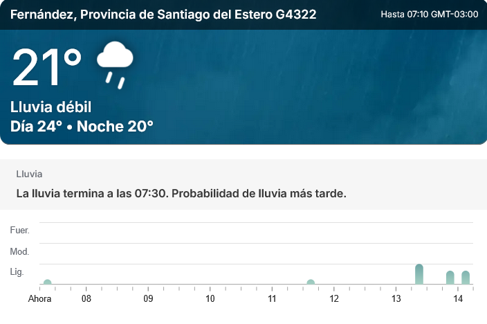 EL CLIMA EN LA CIUDAD DE FERNANDEZ EN ESTE DIA 13 DE ABRIL