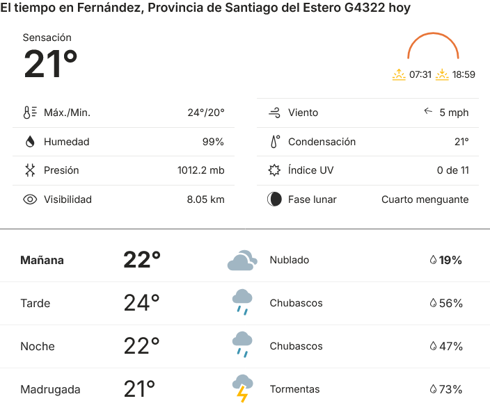 EL CLIMA EN LA CIUDAD DE FERNANDEZ EN ESTE DIA 17 DE ABRIL