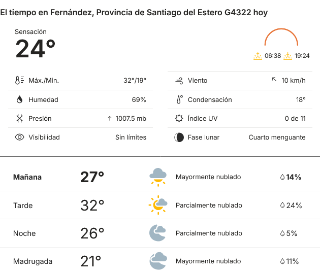 EL CLIMA EN LA CIUDAD DE FERNANDEZ EN ESTE DIA 21 DE ABRIL