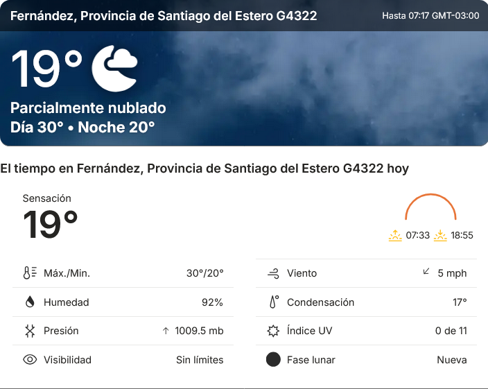 EL CLIMA EN LA CIUDAD DE FERNANDEZ EN ESTE DIA 17 DE ABRIL