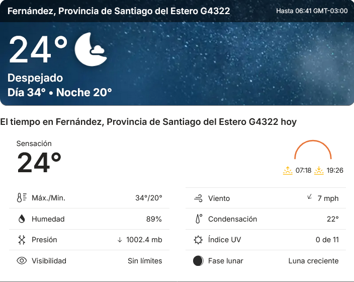 EL CLIMA EN LA CIUDAD DE FERNANDEZ EN ESTE DIA 20 DE MARZO