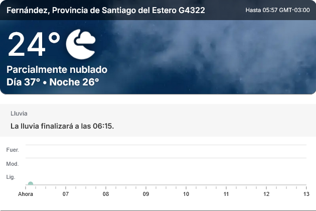 EL CLIMA EN LA CIUDAD DE FERNÁNDEZ EN ESTE DÍA 23 DE OCTUBRE