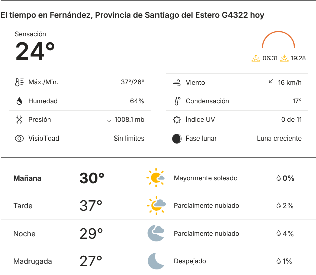 EL CLIMA EN LA CIUDAD DE FERNANDEZ EN ESTE DIA 15 DE ABRIL