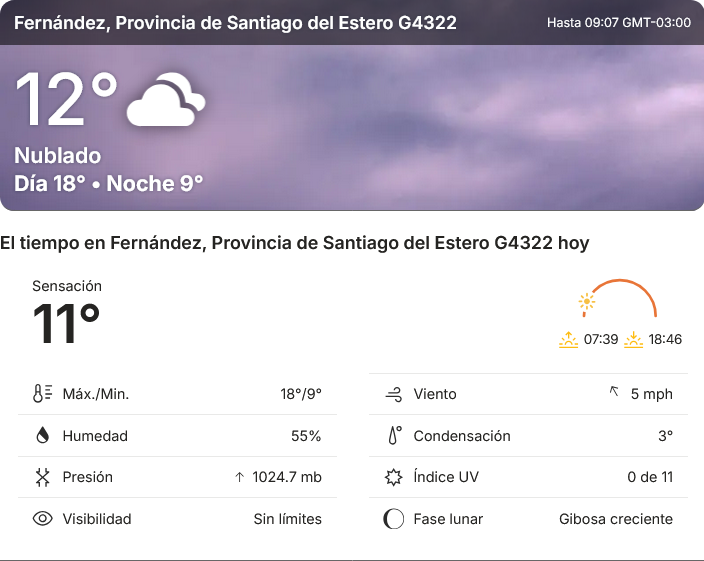 EL CLIMA EN LA CIUDAD DE FERNANDEZ EN ESTE DIA 25 DE ABRIL