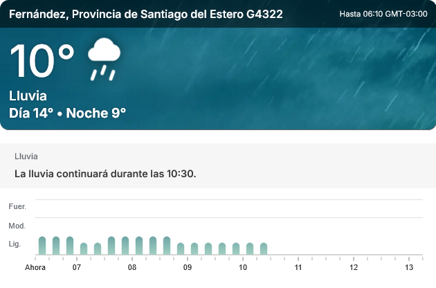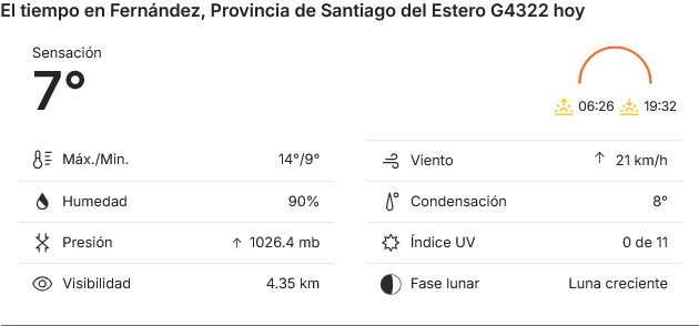 EL CLIMA EN LA CIUDAD DE FERNÁNDEZ EN ESTE DÍA 28 DE OCTUBRE