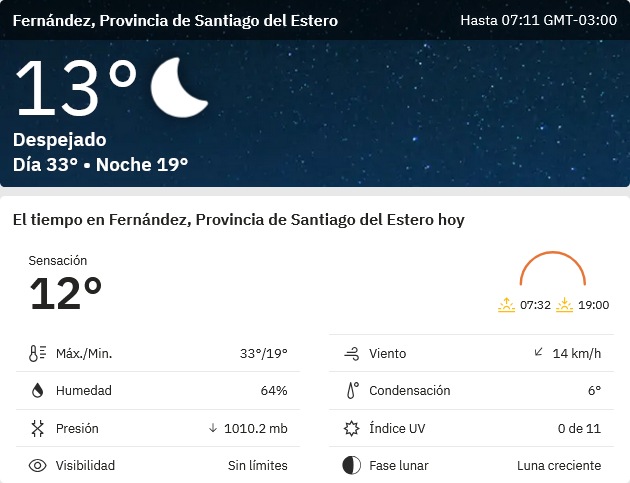 EL CLIMA EN LA CIUDAD DE FERNANDEZ EN ESTE DIA 7 DE MARZO