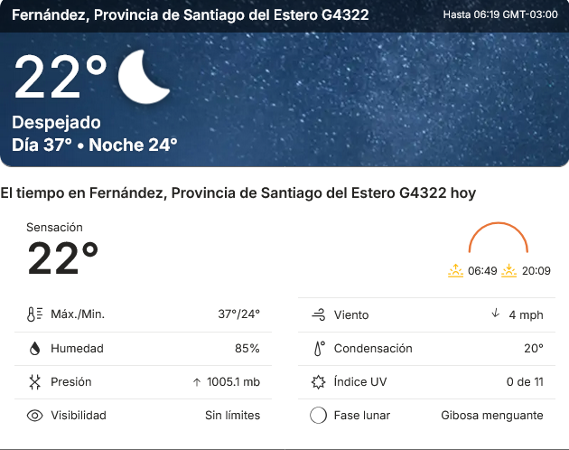 EL CLIMA EN LA CIUDAD DE FERNÁNDEZ EN ESTE DIA 3 DE FEBRERO