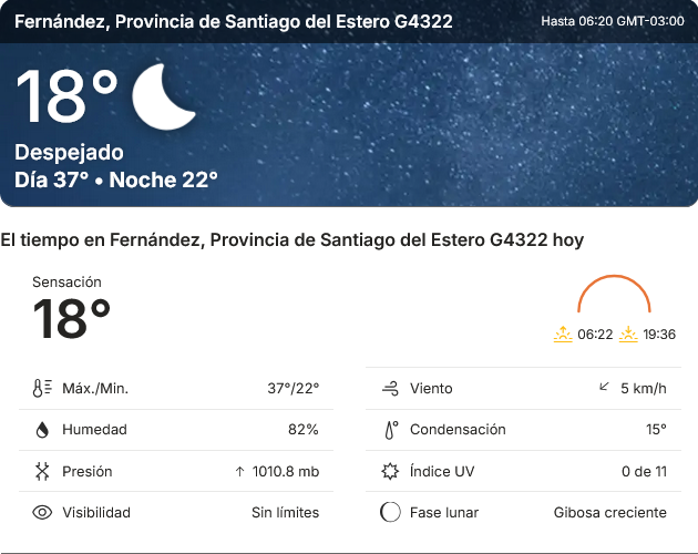 EL CLIMA EN LA CIUDAD DE FERNANDEZ EN ESTE DIA 21 DE ABRIL