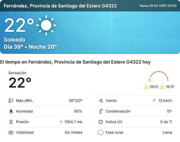 EL CLIMA EN LA CIUDAD DE FERNANDEZ EN ESTE DIA 21 DE ABRIL