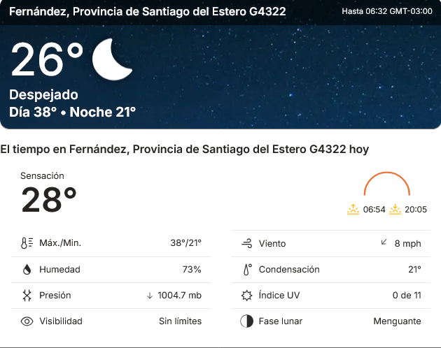 EL CLIMA EN LA CIUDAD DE FERNÁNDEZ EN ESTE DIA 9 DE FEBRERO