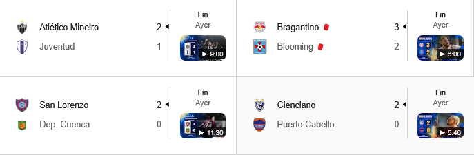 RESULTADOS DE LOS PARTIDOS JUGADOS AYER 16 DE ABRIL