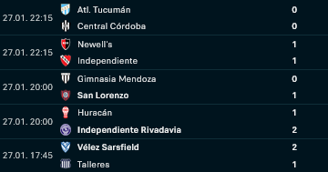RESULTADOS DE LOS PARTIDOS JUGADOS AYER 27 DE ENERO