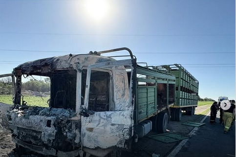 Alrededor de las 17 horas de este jueves personal policial fue advertido sobre un camión, de transporte de ganado, el cual comenzó a incendiarse cuando circulaba por Ruta 9 en inmediaciones de la localidad de San Marcos.