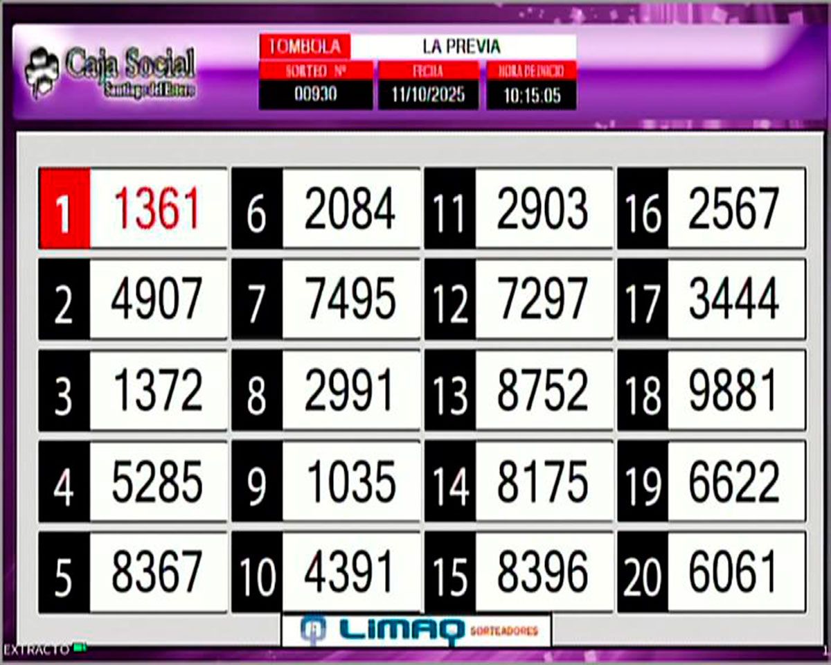 TÓMBOLA SANTIAGUEÑA DEL DÍA 11 DE OCTUBRE