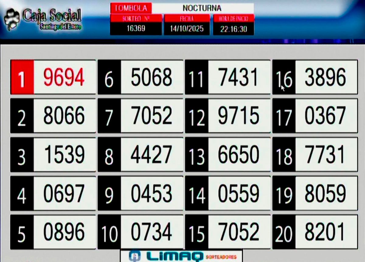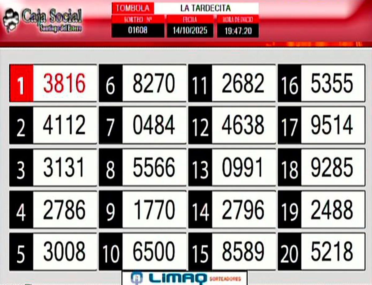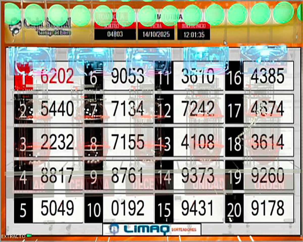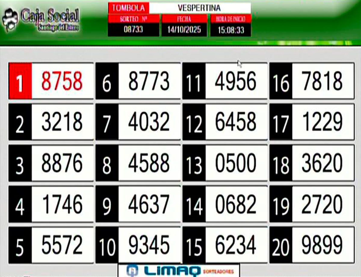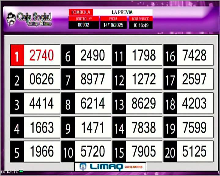 TÓMBOLA SANTIAGUEÑA DEL DÍA 14 DE OCTUBRE