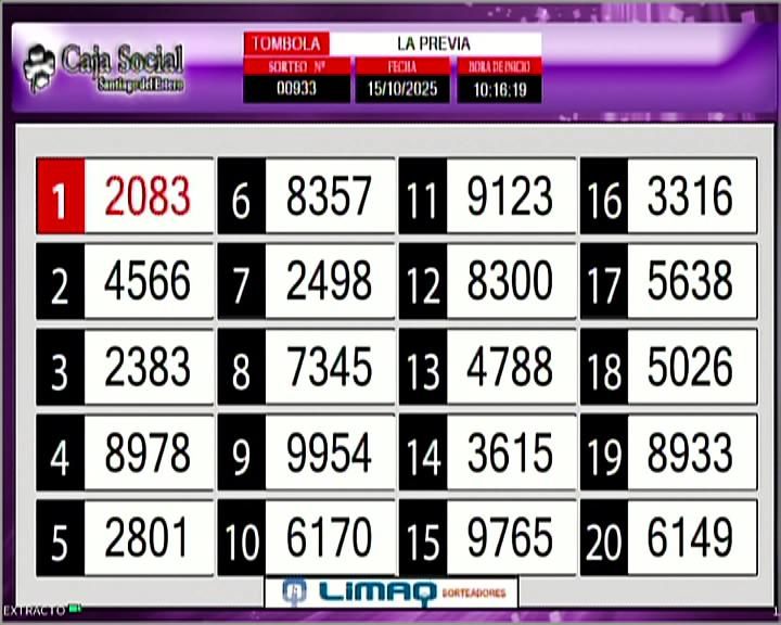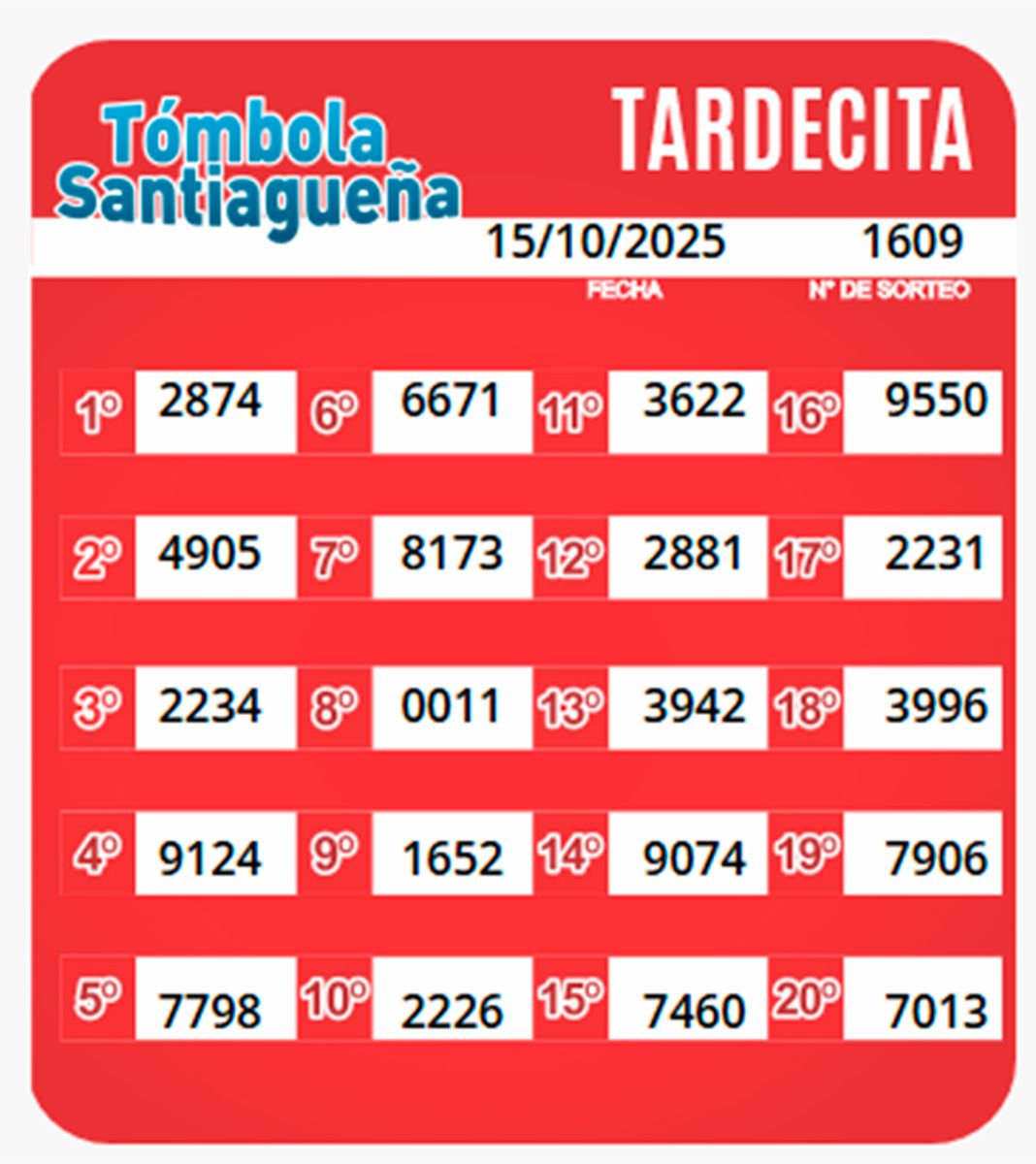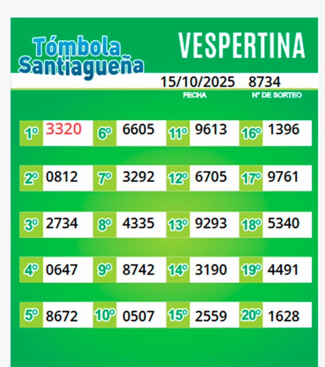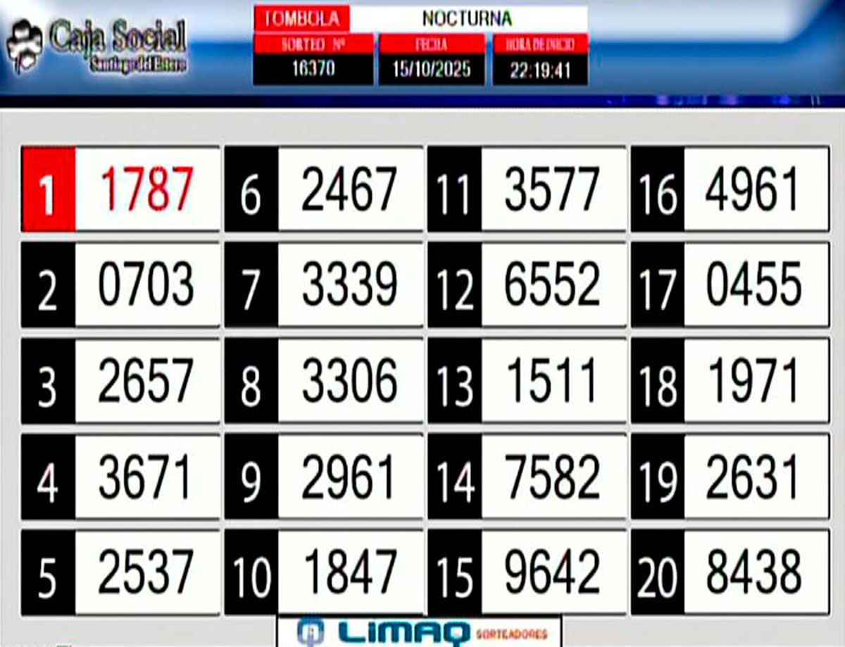 TÓMBOLA SANTIAGUEÑA DEL DÍA 15 DE OCTUBRE