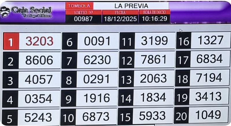 TÓMBOLA SANTIAGUEÑA DEL DIA 18 DE DICIEMBRE