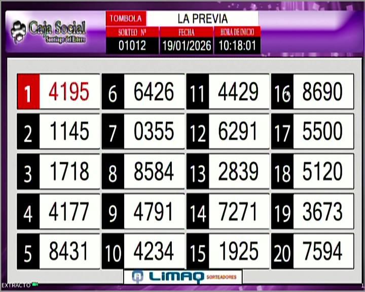 TÓMBOLA SANTIAGUEÑA DEL DIA 19 DE ENERO