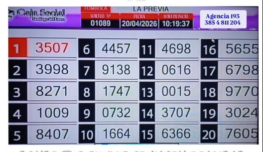 TOMBOLA SANTIAGUEÑA DEL DIA 20 DE ABRIL