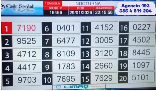 TÓMBOLA SANTIAGUEÑA DEL DIA 29 DE ENERO