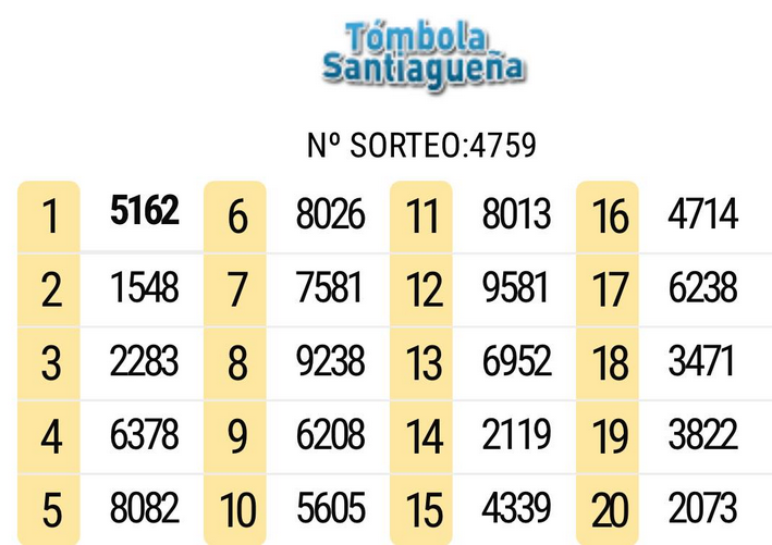 TOMBOLA SANTIAGUEÑA DEL DIA 15 DE ABRIL