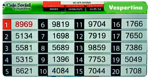 TOMBOLA SANTIAGUEÑA DEL DIA 31 DE AGOSTO