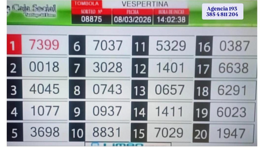 TOMBOLA SANTIAGUEÑA DEL DIA 8 DE MARZO